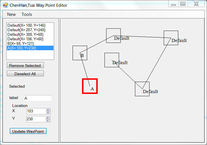 WayPoint Editor date : 2014 – September course: Windows game tools programming programming length: 2 hrs It’s a mid-term exam, but it’s very interesting. This tool is a way pointer editor, and it can update the name, location, order of various kinds of rectangles. Share this: Click to share on X (Opens in new window) X Click to share on Facebook (Opens in new window) Facebook Like Loading...